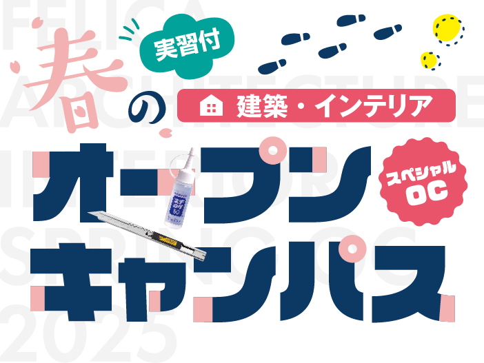 通常オープンキャンパス(学校説明・住宅見学)と体験実習で建築・インテリアの楽しさが分かる春限定スペシャルイベントを開催!